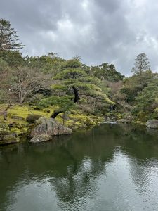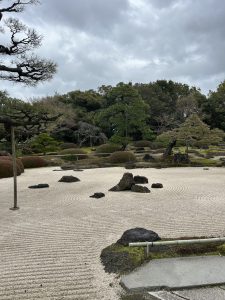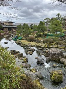 あいにくの曇り空ですが、池泉回遊式庭園や枯山水庭園など
