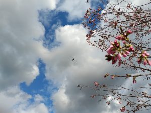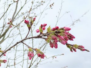 曇り空の下で咲くアセビ(アセビ) もうすぐ開きそうな花 雨上がりの桜と飛行機のコラボ