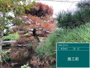 今年の記録的な暑さも影響したために枯れたマツの伐採及び撤去をしました。